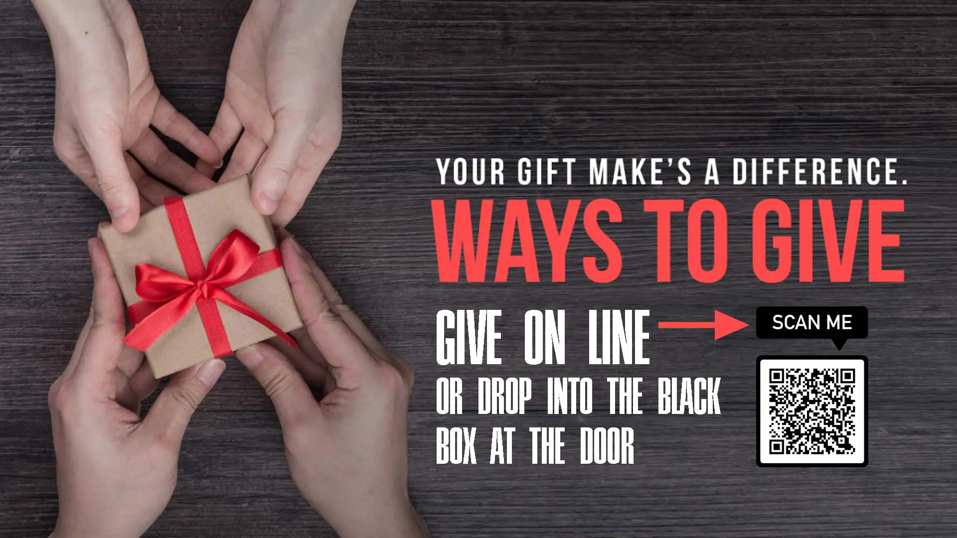 1/ At our Sunday worship gatherings you can drop your gifts into the black giving box next to our front door.