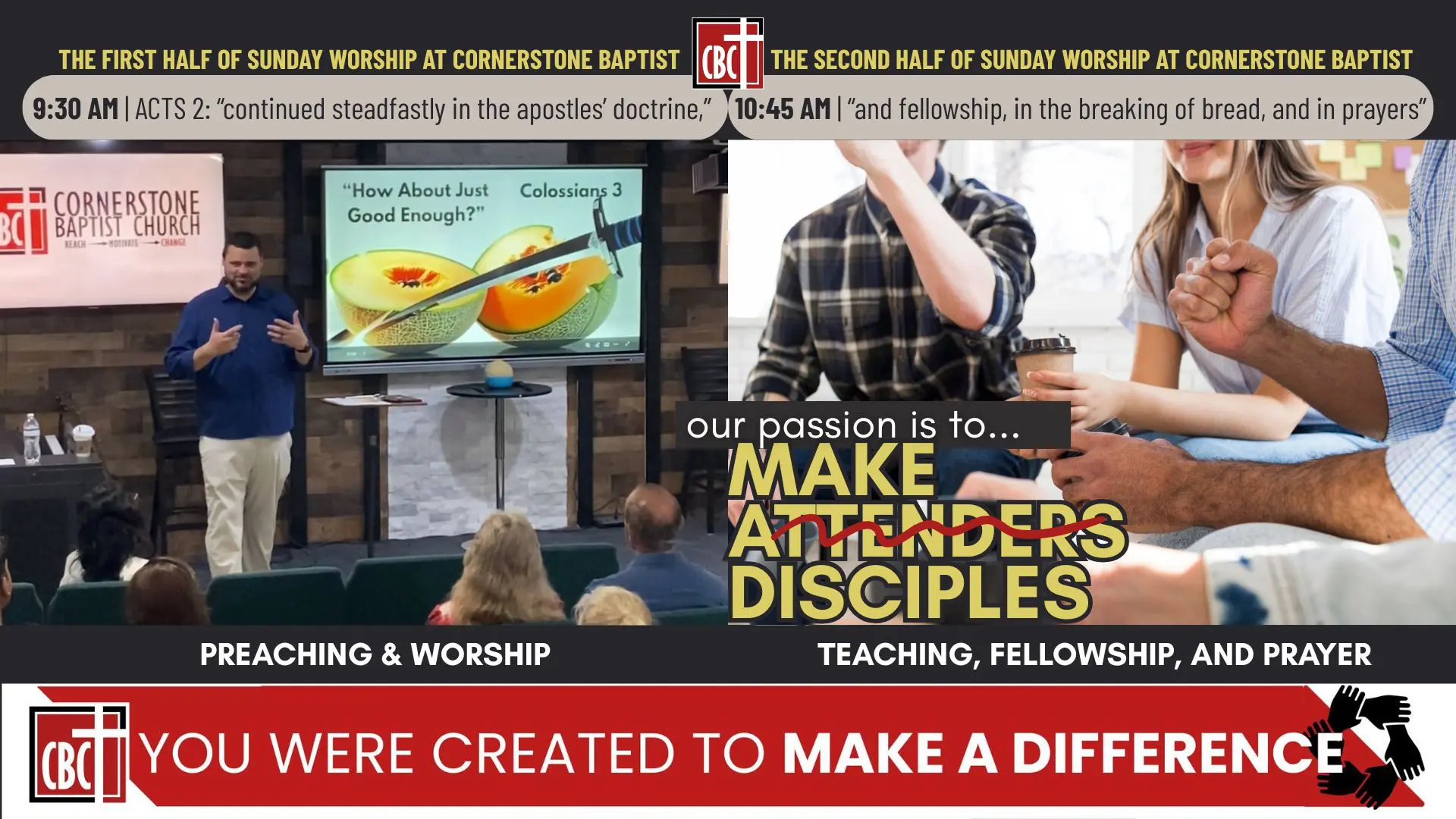 9:30 am Preaching & Worship/9:20 (CHECK IN) Cornerstone Kids | 11:00 am Teaching, Fellowship, and Prayer/ 10:45 (CHECK IN) Kids Fun & Fellowship