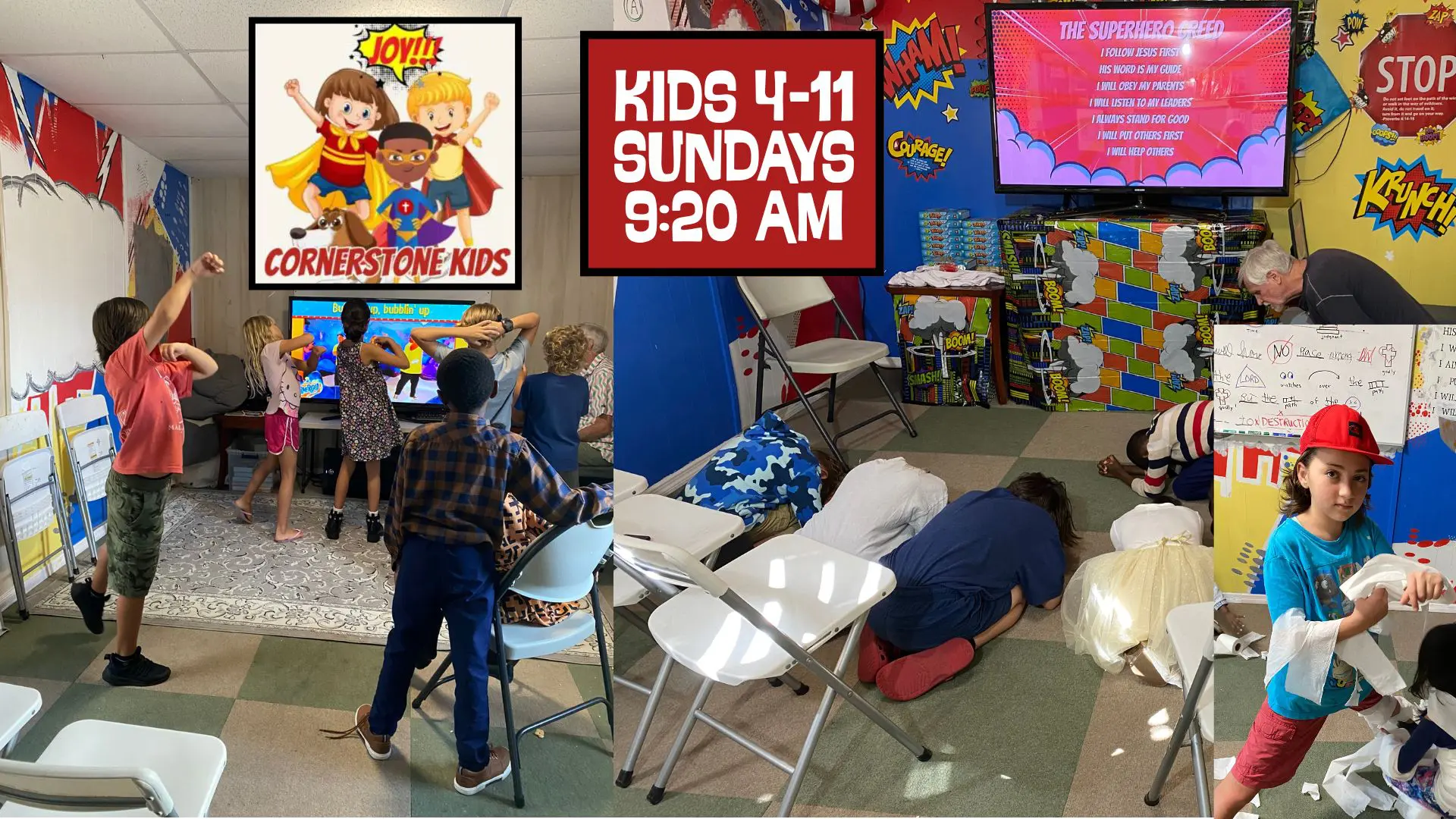 During the 9:30 gathering The Superhero Kids Club meets in the kids zone. Then during the 11:00 worship time, we offer Cornerstone Kids Fun & Fellowship. We encourage guests to join us at the 11:00 gathering to begin with unless you have children 5-11 years old that you would like to enroll in the Superhero Club. And, obviously we want you to come and invite you to join us anytime.