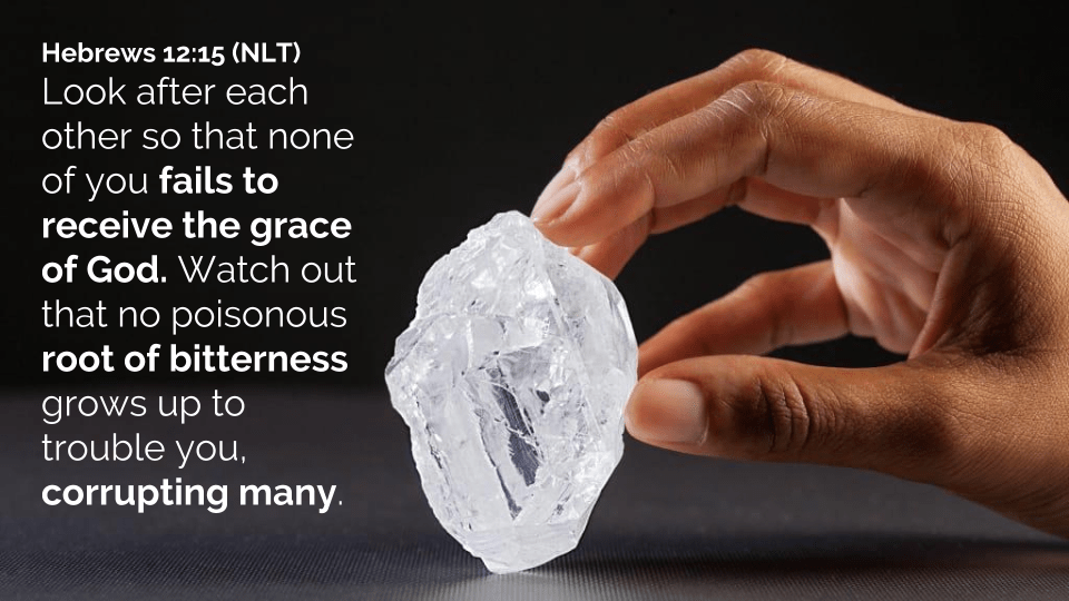 Hebrews 12:15 (NLT) “Look after each other so that none of you fails to receive the grace of God. Watch out that no poisonous root of bitterness grows up to trouble you, corrupting many.”