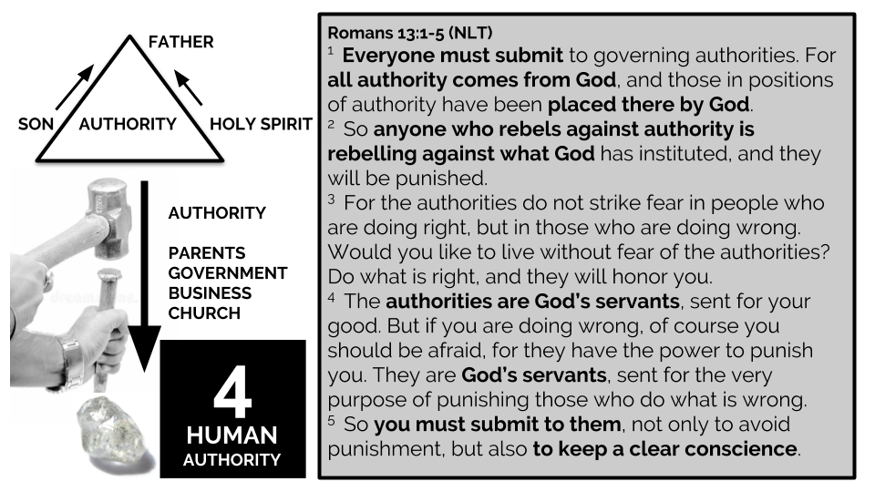 The Bible explains human authorities are established by Him, and He requires us to submit to them to prove we are submissive to Him and to receive the character development necessary for spiritual maturity. You can either be a rebel or servant to God, and if you ignore God or make your own rules, you are a rebel!