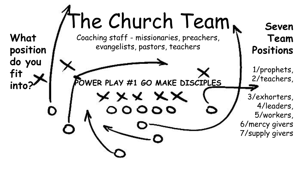 In football the coaches do not play on the field. They oversee, train, equip, coach, encourage, and create plays. The players go out onto the field and execute the plays. The team works together by taking responsibility for important actions and they function together. Each of us has an important team position and must be dedicated and focused to do our part. So what position do you fill?